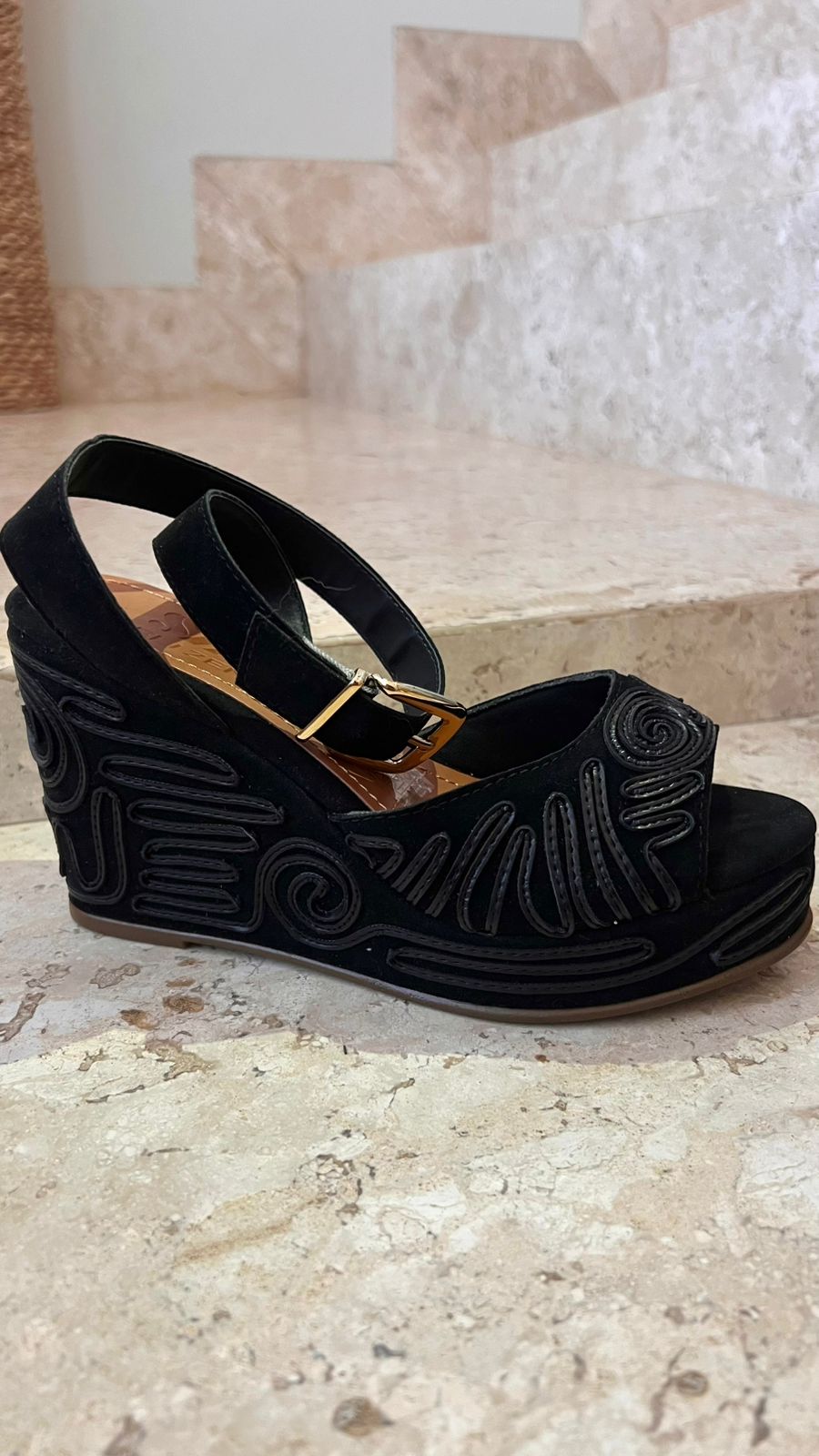 Anabela SZ em Camurça com Bordado em Alto Relevo