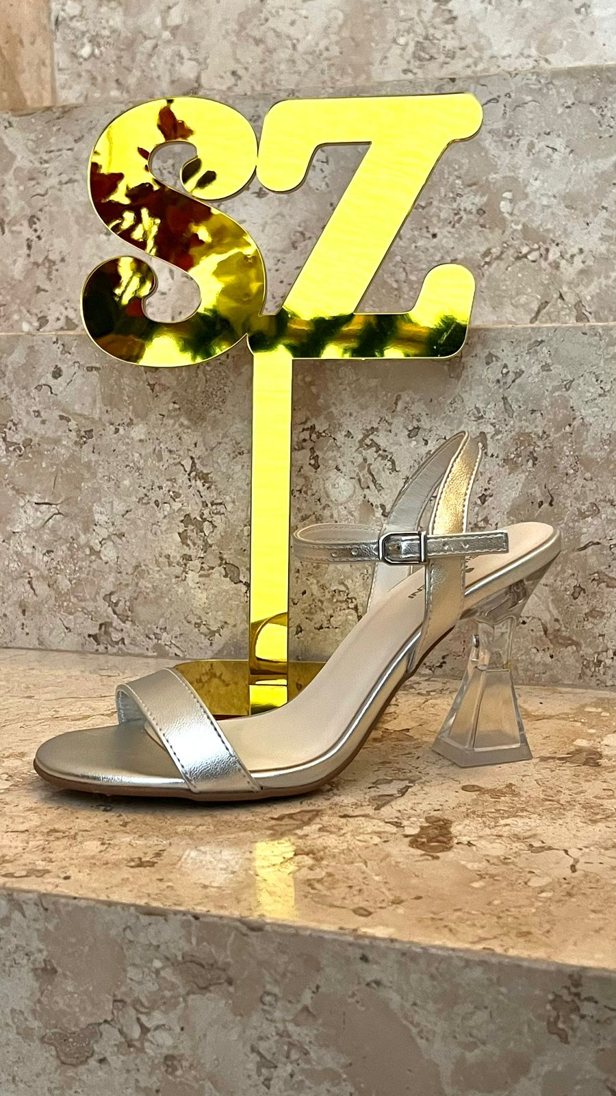 Sofisticação e modernidade definem esta sandália SZ. Com acabamento prateado que ilumina o look e salto taça em acrílico de 9 cm, o modelo traz um design elegante que valoriza a silhueta sem abrir mão do conforto.Possui ajuste regulável na fivela, proporcionando encaixe seguro e personalizado aos pés. Sua forma é normal e fiel à numeração, garantindo tranquilidade na escolha do tamanho. Uma peça refinada, perfeita para quem busca estilo, qualidade e confiança em cada passo.